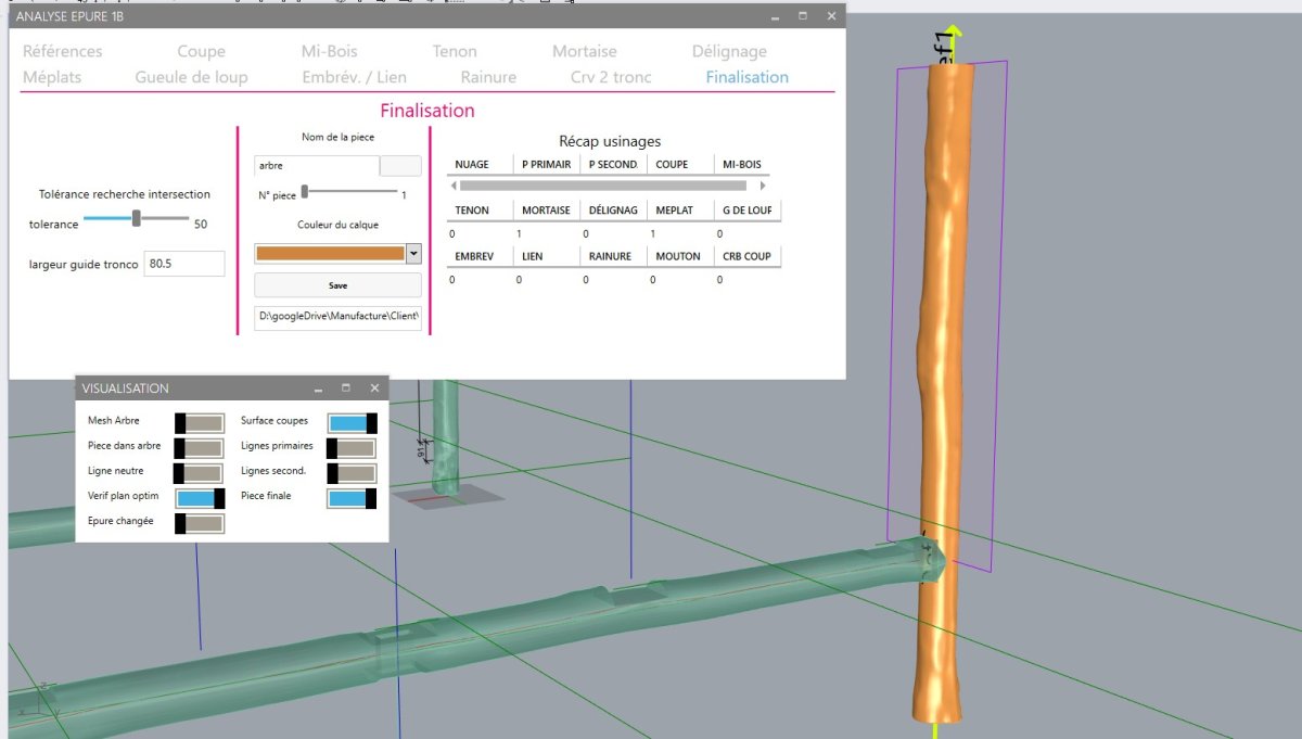 Validation majeure de notre processus : un seul artisan pilote l'intégralité de la fabrication d'un mur colombage (écorçage, scan, usinage, assemblage)